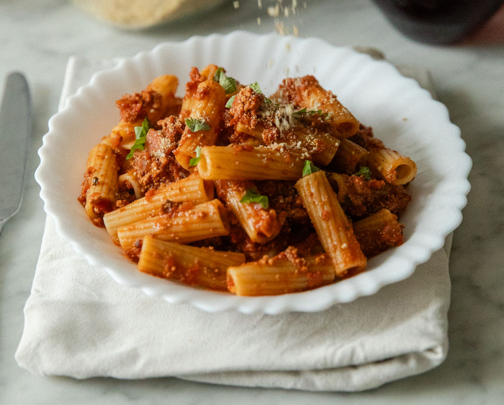 Cremet gochujang og krydret tofu rigatoni